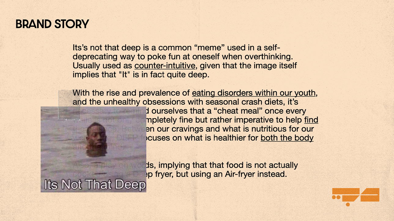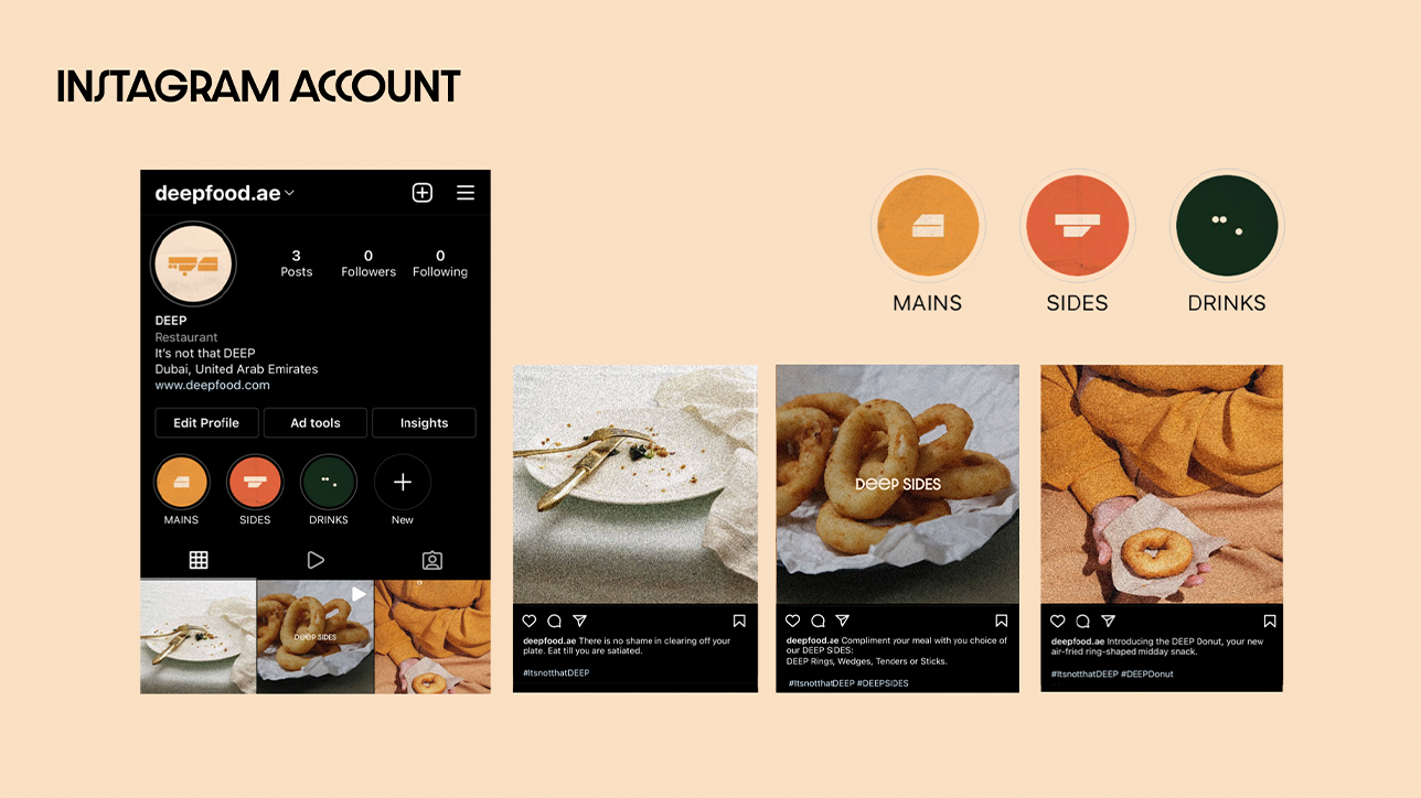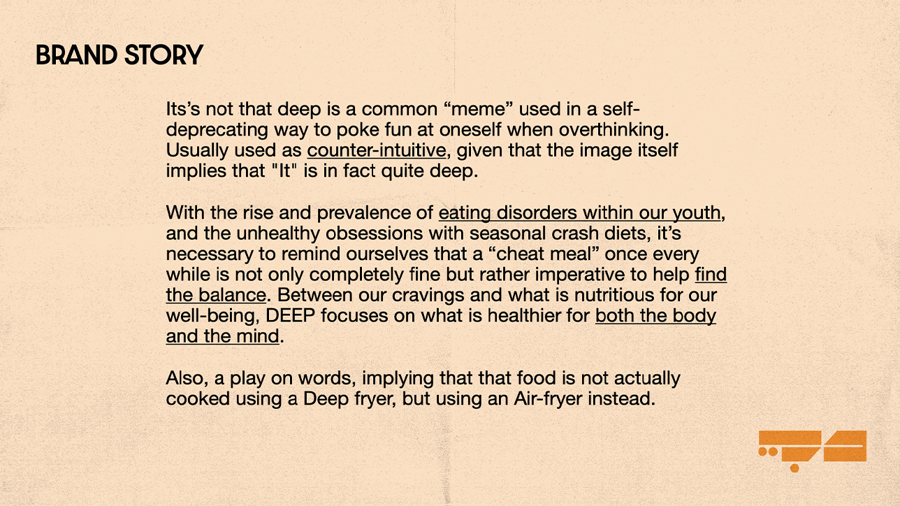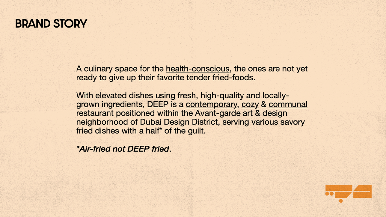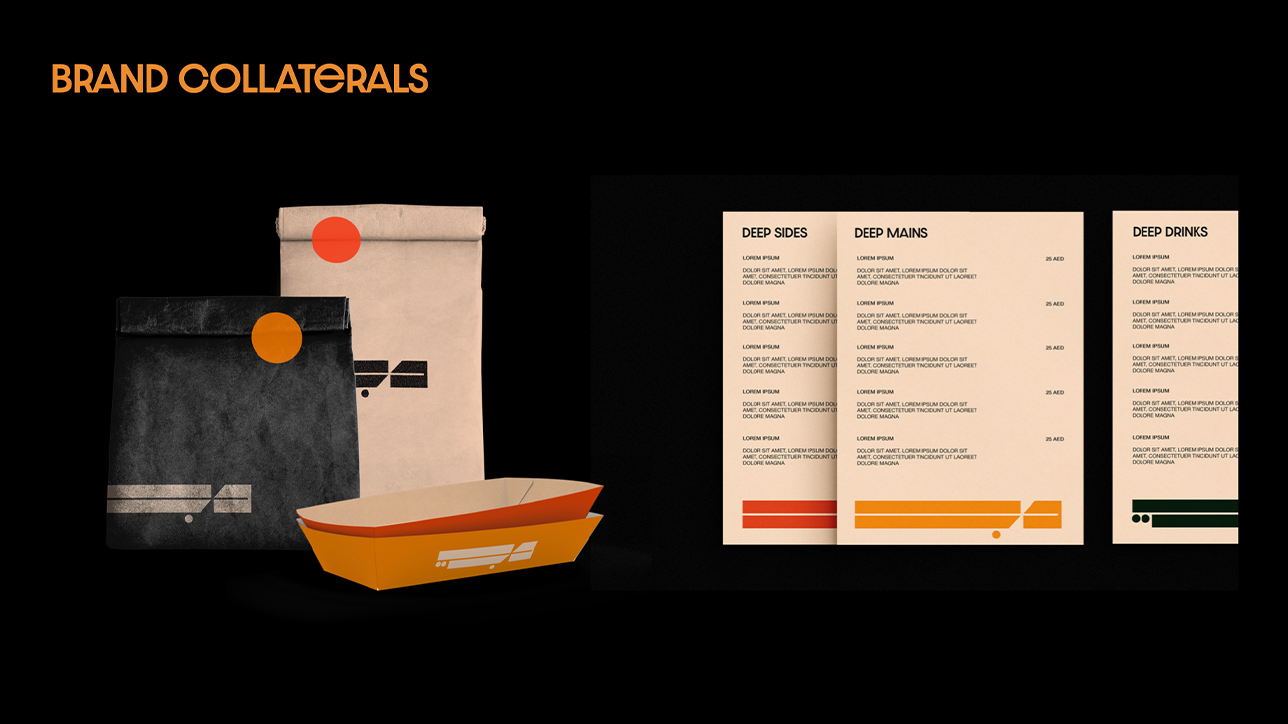 Brand Strategy, expression, guidlines & implementation for a restaurant concept named DEEP. A culinary space for the health-conscious, the ones are not yet ready to give up their favorite tender fried-foods.